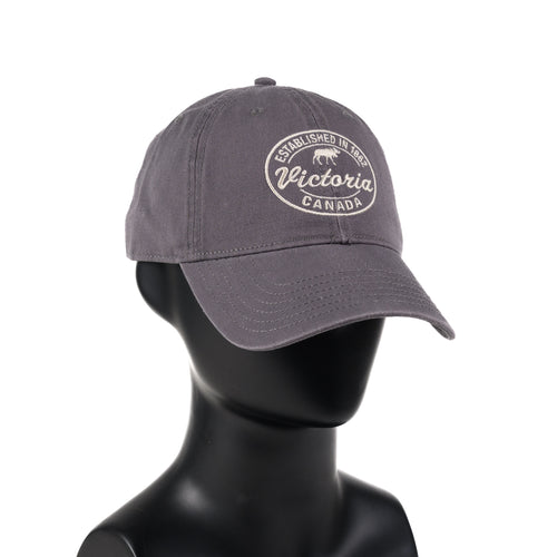 Deep red cotton ball cap with maple leaf patch, silver metal Canada lettering and adjustable velcro strap in back. Earth friendly product by using sustainable materials, renewable resources or reclaimed materials, this hat leaves little imprint on our environment.