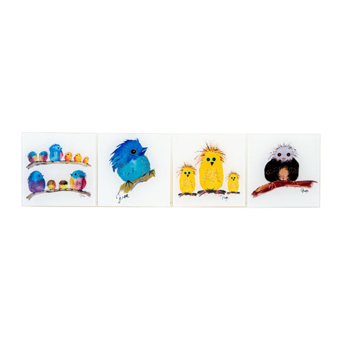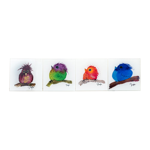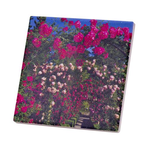 Individual Signature Series 4" stone coasters absorb liquids to keep surfaces dry. Available in Blue Poppy, Iris, Sunken Garden and Sweet Pea watercolour designs..