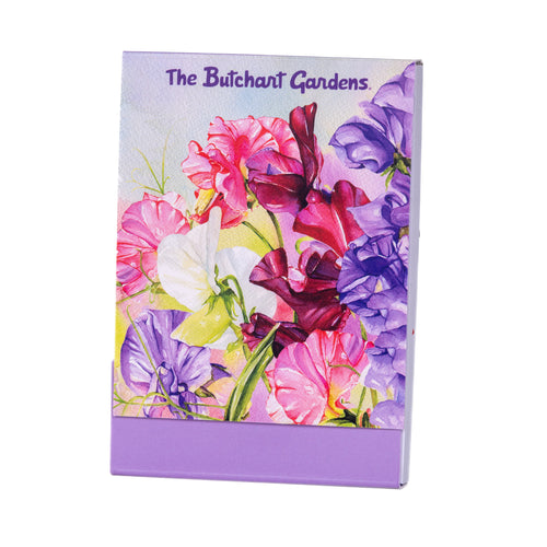 4" X 3" Iris plain paper notepads with magnet closure and brief history of The Gardens on the back. Designed by our in-house artist made exclusively for The Butchart Gardens.