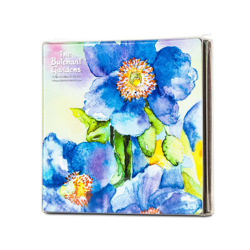Individual Signature Series 4" stone coasters absorb liquids to keep surfaces dry. Available in Blue Poppy, Iris, Sunken Garden and Sweet Pea watercolour designs..