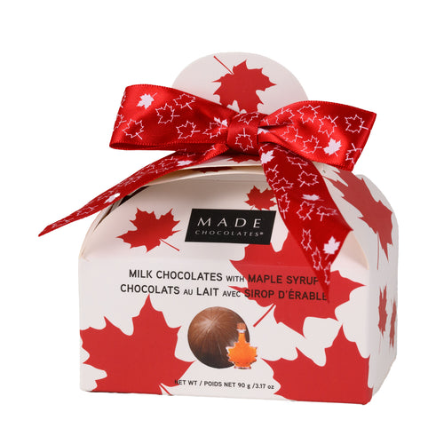 Big 11 1/2" X 3 1/2" milk chocolate bar with 8 scenes of Canada on the back. 225g